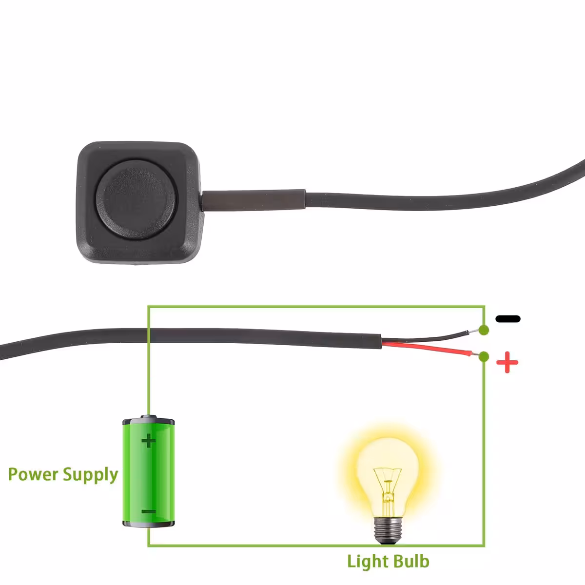 Σετ 2 τεμαχίων μικρά κουμπιά για 12V / 24V, σχεδιασμένα για επιφανειακή εγκατάσταση σε εφαρμογές αυτοκινήτων, μοτοσικλετών, σκαφών, βιομηχανικού εξοπλισμού και ηλεκτρονικά έργα. Τα κουμπιά έρχονται προ-καλωδιωμένα (2 ακίδες: κόκκινο = «+», μαύρο = «–»). Η λειτουργία στιγμιαία τα καθιστά ενεργά μόνο όσο παραμένουν πατημένα, ιδανικά για χειρισμούς χαμηλής κατανάλωσης και γρήγορη σήμανση.