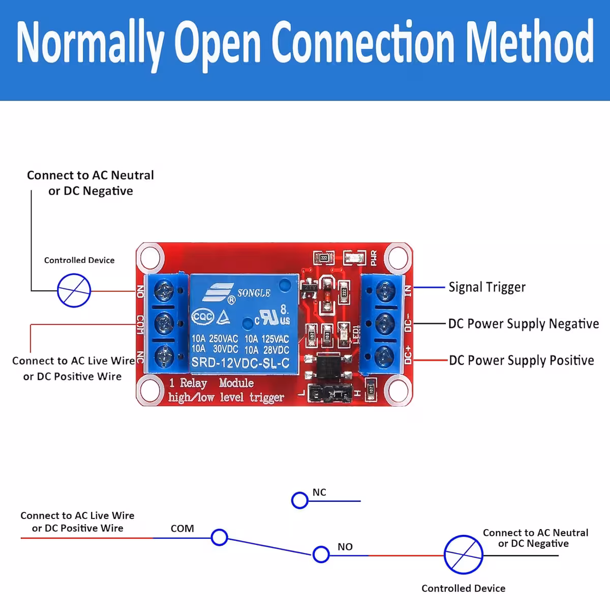 Χρησιμοποιήστε NC/C/NO για έλεγχο φορτίου AC ή DC.
