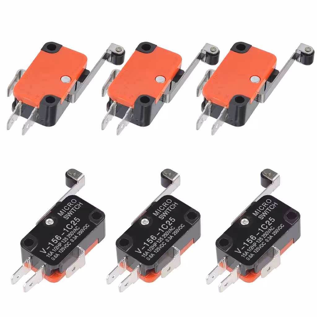Σετ 6 τεμάχια – Διακόπτης τερματισμού με ροδάκι και μακρύ μοχλό (endstop) – Βιομηχανικός μικροδιακόπτης 15A για AC/DC