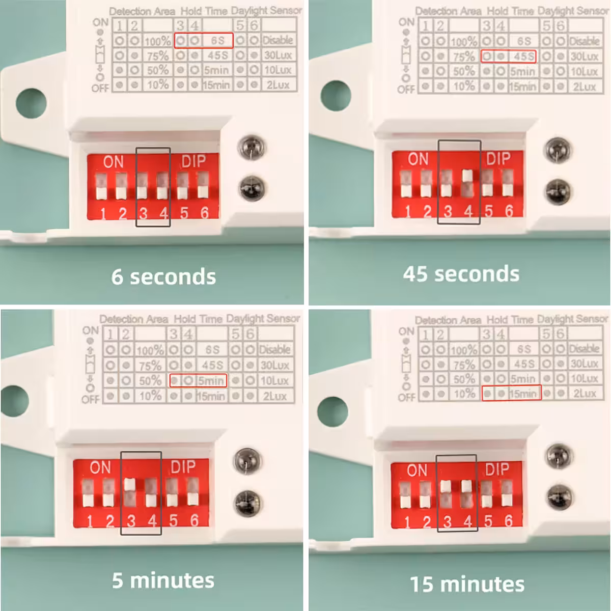 - Αισθητικότητα φωτεινότητας: ρυθμιζόμενη (2 / 10 / 30 / 2000 lux).