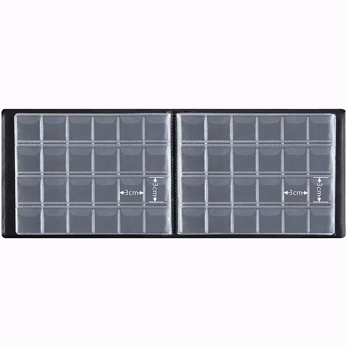 Αυτό το άλμπουμ-φάκελος για νομίσματα έχει σχεδιαστεί ειδικά για να αποθηκεύει και να οργανώνει αποτελεσματικά νομίσματα, μάρκες, μετάλλια ή σήματα από την προσωπική σου συλλογή. Κάθε θήκη έχει διαστάσεις περίπου 3 x 3 εκ., κατάλληλη για νομίσματα διαμέτρου έως 2,8 εκ.