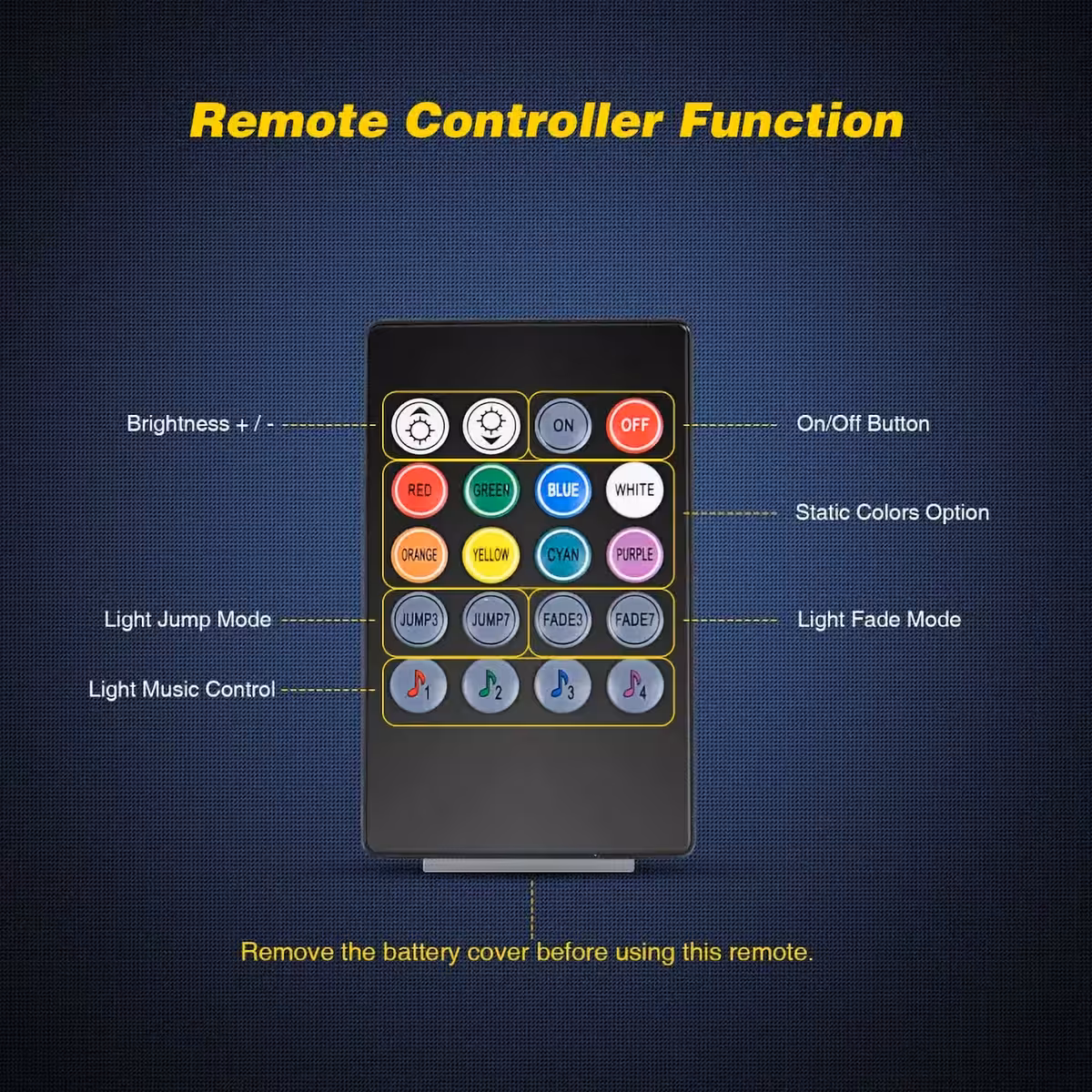 • Τηλεχειριστήριο με 8 χρώματα SMD RGB και επιλογές ρύθμισης φωτεινότητας.