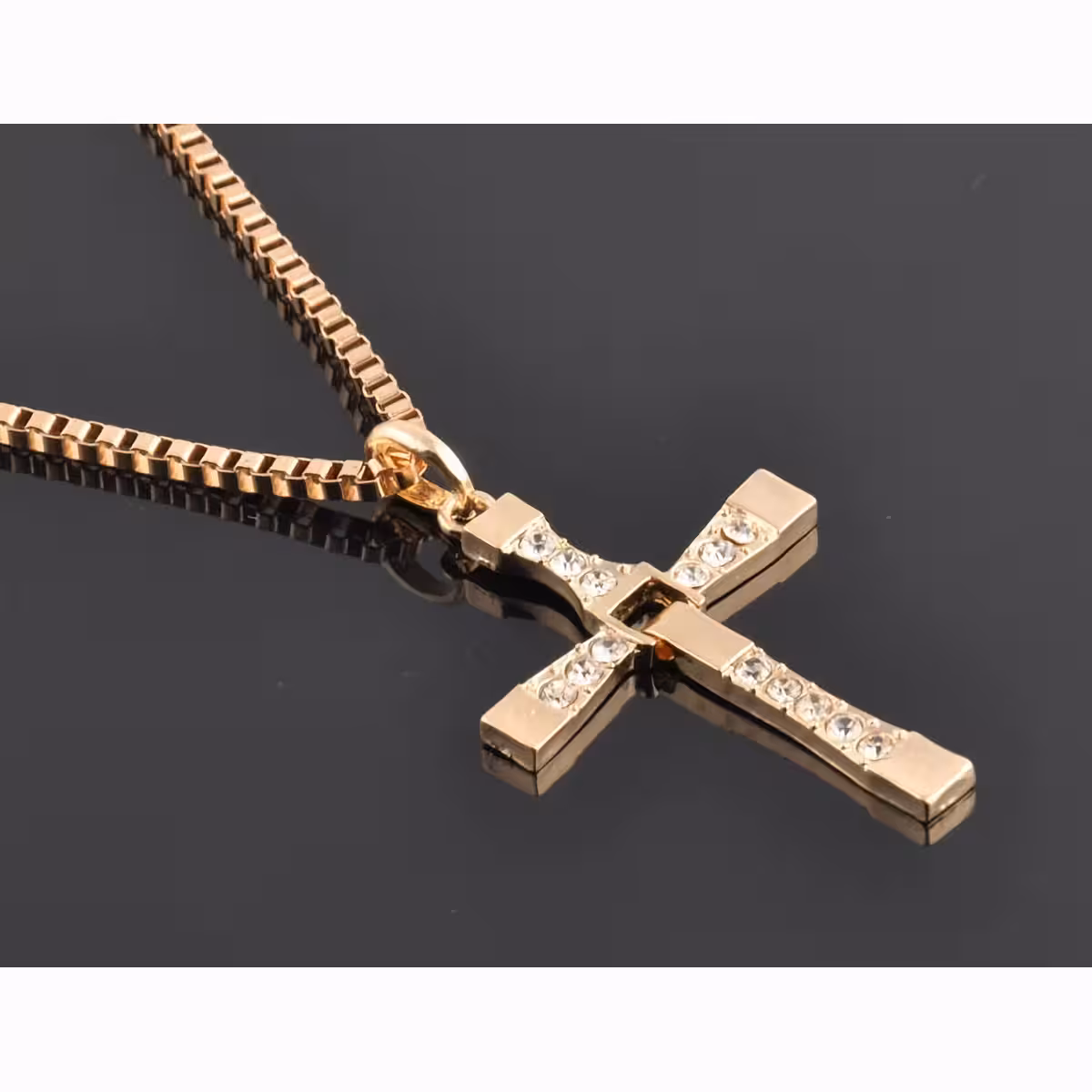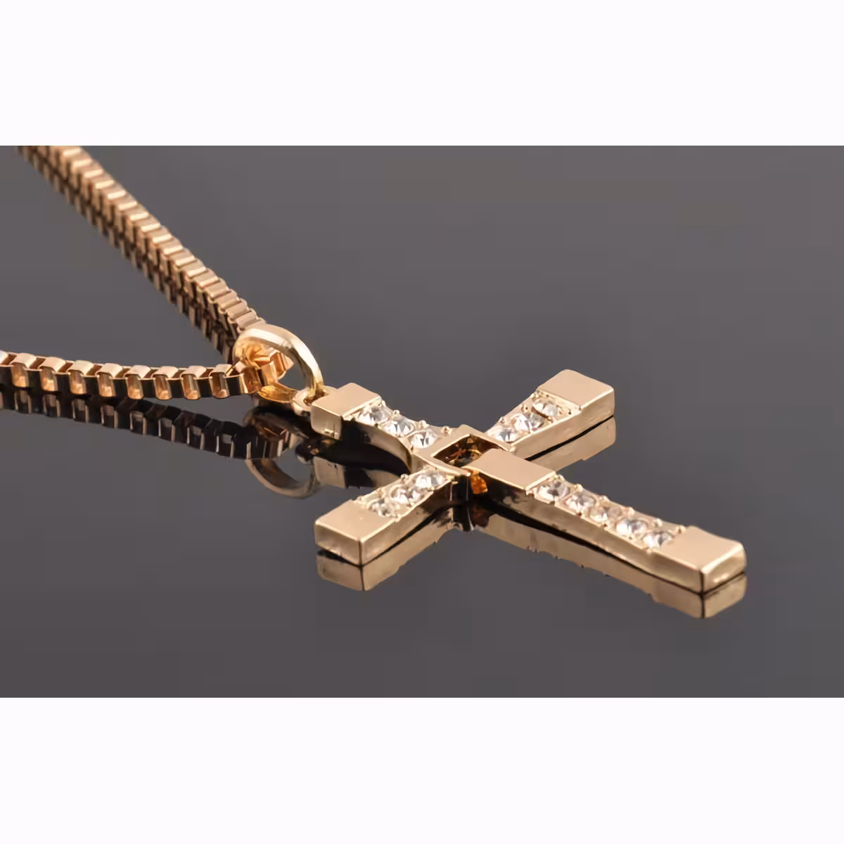 Αυτό το μενταγιόν με χρυσό σταυρουδάκι είναι εμπνευσμένο από την ταινία Fast and Furious, που φοριέται από τον διάσημο χαρακτήρα Dominic Toretto (Vin Diesel). Ιδανικό για τους θαυμαστές της σειράς, συλλέκτες ή λάτρεις των εντυπωσιακών αξεσουάρ, αυτό το κολιέ αναπαριστά πιστά το εμβληματικό σύμβολο της αφοσίωσης και της δύναμης.