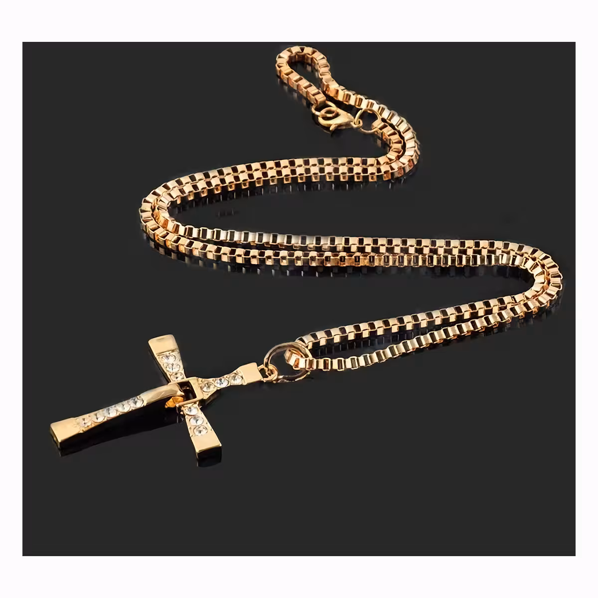 Χρυσό Κολιέ με Σταυρουδάκι – Μενταγιόν Fast and Furious Vin Diesel
