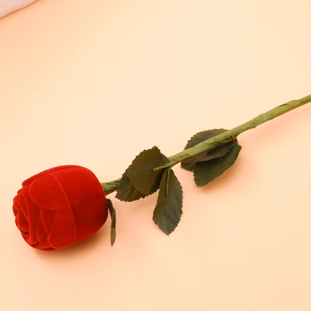Η πολυαναμενόμενη στιγμή πλησιάζει; Προσφέρετε το κόσμημα σε ένα ιδιαίτερο κουτί παρουσίασης, που αποπνέει συναίσθημα και εκλεπτυσμένη αισθητική. Αυτό το κουτί σε σχήμα κόκκινου τριαντάφυλλου με πράσινα φύλλα είναι το τέλειο σύμβολο της αγάπης και της αφοσίωσης.