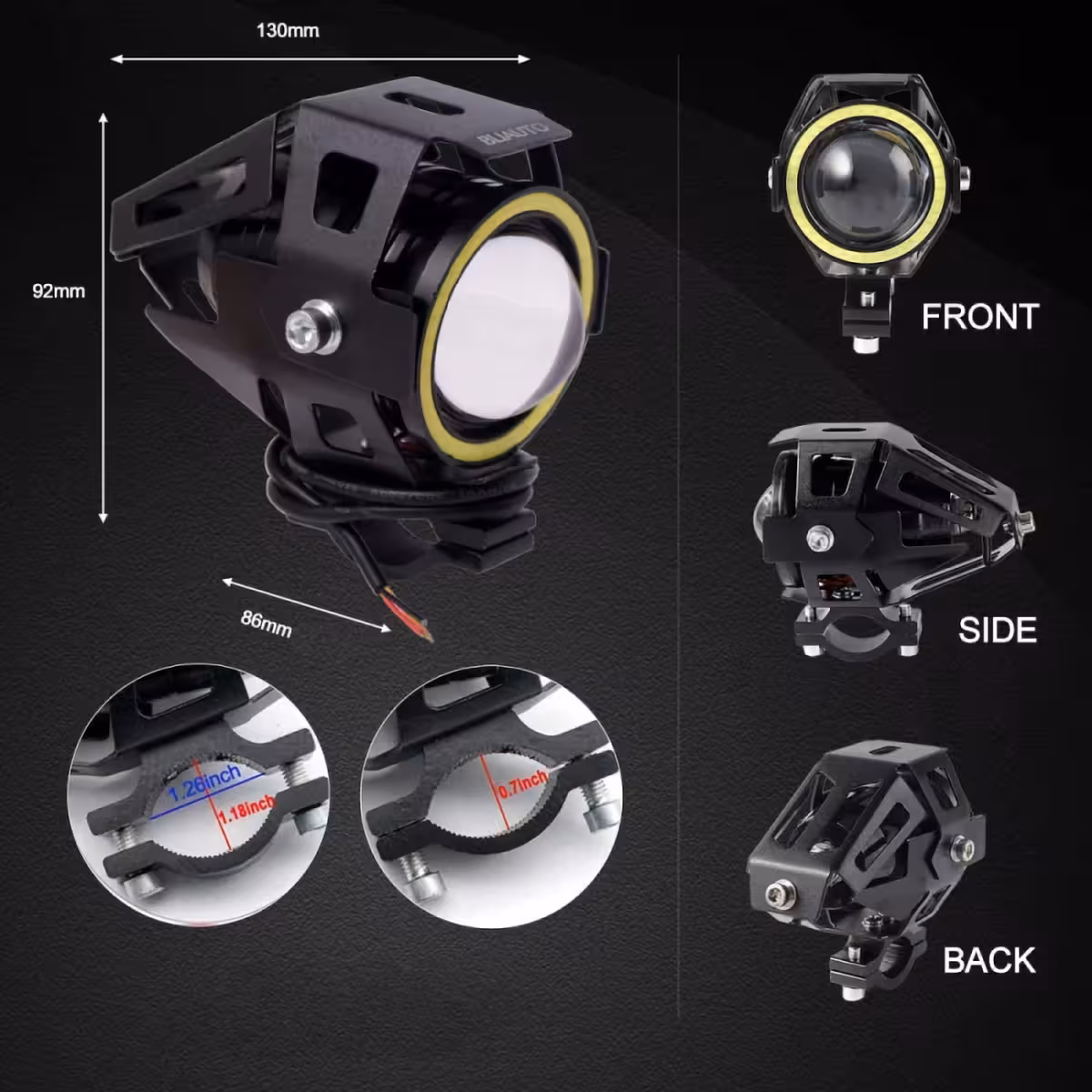 LED Προβολέας τύπου U7 με Angel Eyes, ιδανικός για χρήση σε μοτοσυκλέτα, ATV, ηλεκτρικό ποδήλατο, σκούτερ ή αυτοκίνητα off-road. Αυτός ο βοηθητικός LED προβολέας προσφέρει εξαιρετική ορατότητα και επιθετικό στυλ, καθιστώντας τον τέλεια επιλογή για σκοτεινούς δρόμους και δύσκολες συνθήκες.