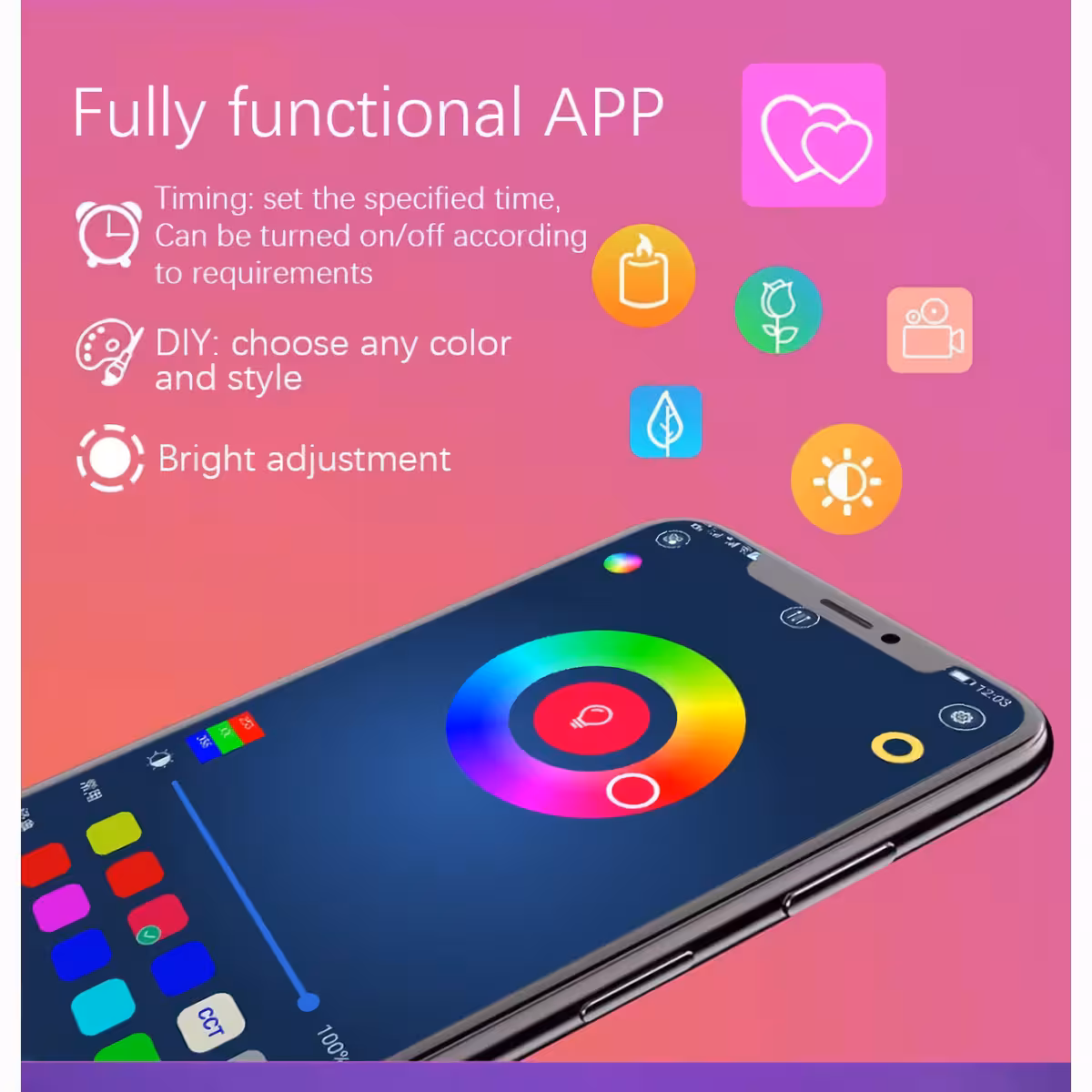 Η εγκατάσταση είναι γρήγορη και απλή χάρη στην αυτοκόλλητη ταινία στο πίσω μέρος, που επιτρέπει την επικόλληση σε οποιαδήποτε λεία επιφάνεια. Το μήκος της LED ταινίας είναι 10 μέτρα, και η ταινία μπορεί να προσαρμοστεί κόβοντας την στο επιθυμητό μέγεθος.