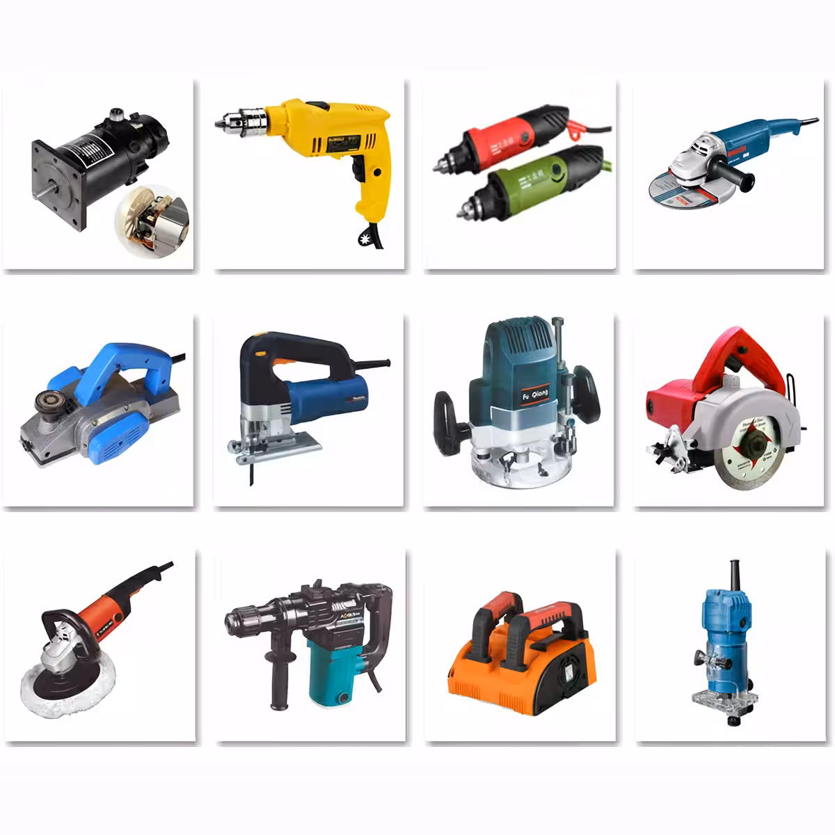 - Ηλεκτρικά εργαλεία: δράπανο, γωνιακός τροχός, τριβείο, πριόνι, μηχανή λείανσης