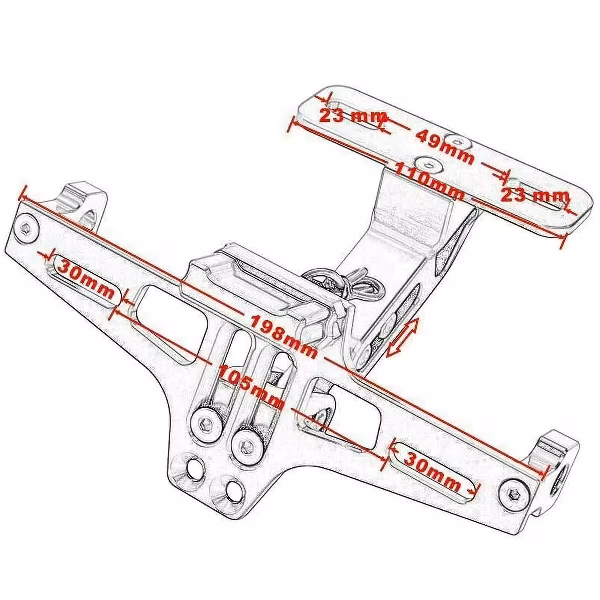 Αυτό το πτυσσόμενο στήριγμα πινακίδας μοτοσυκλέτας κατασκευάζεται από κράμα αλουμινίου 6063-T6, προσφέροντας εξαιρετική αντοχή στη φθορά και στις δυσμενείς καιρικές συνθήκες. Ο πτυσσόμενος μηχανισμός του επιτρέπει την ρύθμιση της γωνίας για τέλεια τοποθέτηση, ανεξάρτητα από το σχήμα ή το μέγεθος της μοτοσυκλέτας.