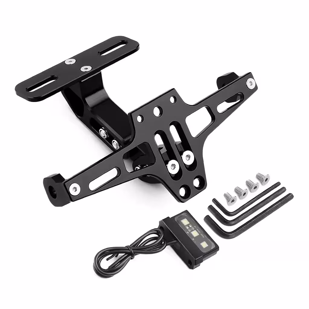 Πτυσσόμενο Universal Στήριγμα Πινακίδας Μοτοσυκλέτας με LED – Αλουμίνιο, Συμβατό με τις περισσότερες μοτοσυκλέτες